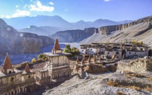Today we take in the sites of the Lower Mustang Valley on sometimes challenging roads, beside the Kali Gandaki River. Passing though village life and the ever-outstanding vistas, we make our way ever upwards to Muktinath, one of the most important (and highest at 3800m) temples in Hinduism. This site, dedicated the the god Vishnu, is also holy to Buddhists. Feel free to wash away your sins under the 108 cold water outlets. From this holy site we will descend back toward the river, cross the valley and gain height to reach a dizzying dirt track. Down again – and across – the river and we find our overnight stop at Kagbeni village in a charming guesthouse.